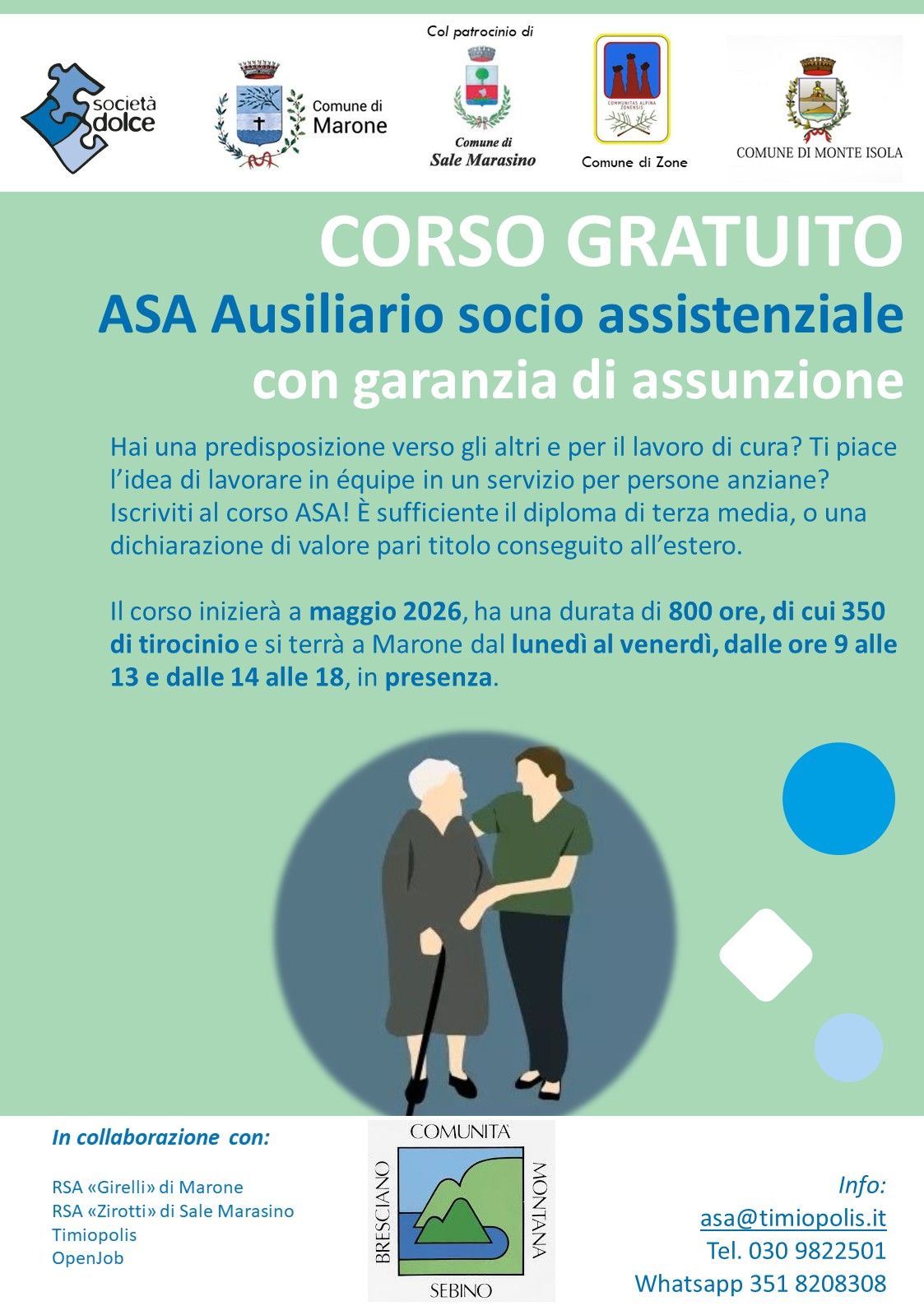 In allegato si pubblica la locandina del corso gratuito per diventare ASA - Ausiliario socio assistenziale - patrocinato dal nostro Comune.