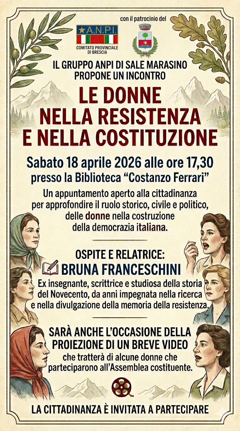 Documenti Allegati Locandina riepilogativa 25 aprile Allegati Locandina escursione guidata Allegati Locandina "Le donne nella resistenza e nella costituzione"